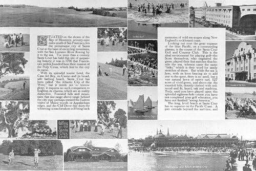 Situated on the shores of the Bay of Monterey, seventy-nine miles south of San Francisco, lies the picturesque city of Santa Cruz at the base of encircling mountains, with the San Lorenzo River flowing by it to the sea. For more than a century Santa Cruz has held this site of surpassing beauty; it was in 1791 that Franciscan padres founded here their mission of the Holy Cross, which lent to the city its name. With its splendid tourist hotel, the Casa del Rey, its Casino and its broad, safe bathing beach, Santa Cruz has been called "the Atlantic City of the West," but it needs not to borrow glory; it requires no such comparison to heighten its charms, which are in reality distinctive. Forested hills and mountains that rise range above range behind the city may perhaps remind the Eastern visitor of Maine woods or Appalachian ridges, and the Cliff Drive that skirts the whitening ocean breakers will bring back memories of wild sea-scapes along New England's rockbound coast. Looking out over the great expanse of the blue Pacific, on a commanding plateau, is the course of the Santa Cruz Golf and Country Club. This is the ideal environment for playing golf--the Scots themselves, who originated the game, played their first matches thus beside the sea, whence came the name "links," which is their word for sandy stretches of shore. But while the sea is here, with its keen bracing air to add zest to the sport, there is no sand, but a vast natural lawn of native turf, 127 acres of vivid green, and above rise the rounded hills, densely clothed with redwood and fir, laurel, oak and madrona. Truly, until you have played upon this splendid eighteen-hole course you have not completed your golf education, you have not finished "seeing America." The long, level beach at Santa Cruz has no superior on the Pacific Coast. A pier extends beyond the surf-line, and |